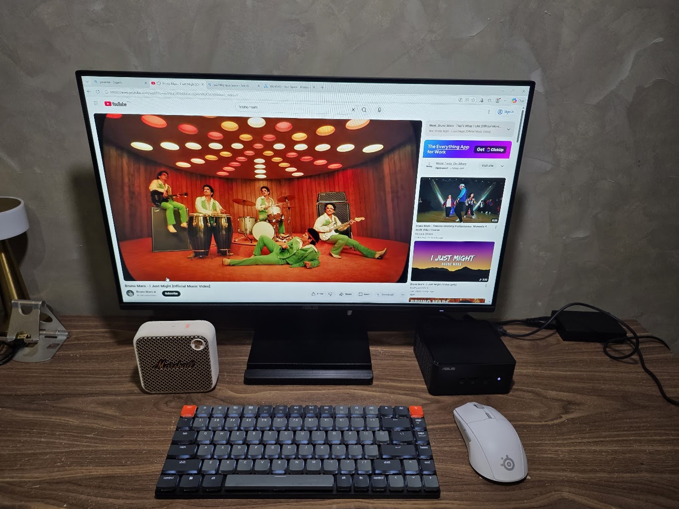 The trade-off here is clear: you are sacrificing the bulk of a traditional tower for a modular system that is easier to fix, faster to deploy, and takes up zero desk space when mounted. Whether a business chooses to invest in this compact future depends on how much they value that regained square footage. For such a small box, you get both Bluetooth and WiFi-7 connectivity allowing you to go completely wireless for peripherals as seen in the photo above where my mouse, keyboard, speakers are all connected wirelessly via Bluetooth and 2.4GHz dongle.