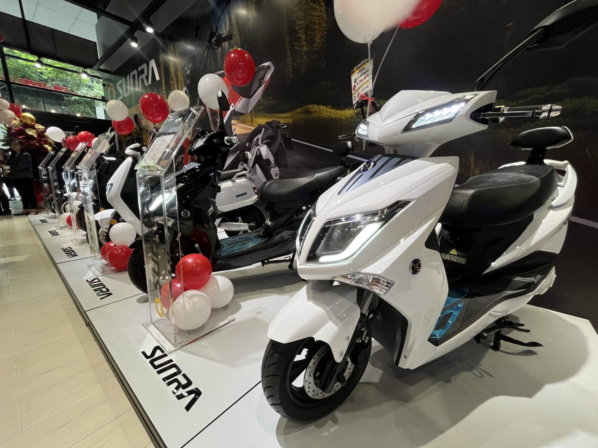 The showroom features several of Sunra’s top models, with prices ranging from PHP 80,000 to PHP 198,000. The entry-level model, Sunra Hawk, is priced at PHP 80,000, making it an affordable option for those looking to switch to electric two-wheelers.