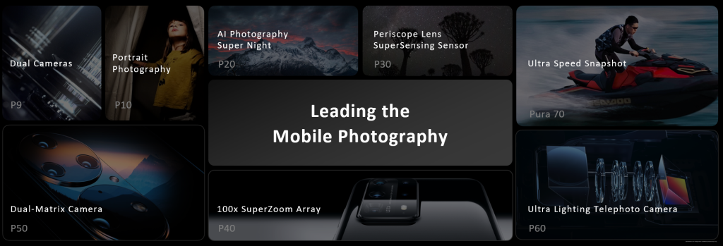 The series quickly evolved into a symbol of mobile photography innovation with landmark features such as the HUAWEI P9’s mono-color dual-lens technology, the HUAWEI P20’s revolutionary Super Night Mode, the HUAWEI P30’s pioneering Periscope Tele Lens, the HUAWEI P40’s unmatched 100x SuperZoom Array, the HUAWEI P50’s 10-Channel Multi-Spectrum Sensor, and the HUAWEI P60’s Ultra Lighting Macro Telephoto Camera. Each generation reaffirms the series’ position as a leading figure in the evolution of mobile photography, setting new benchmarks and propelling the future of imaging innovation.