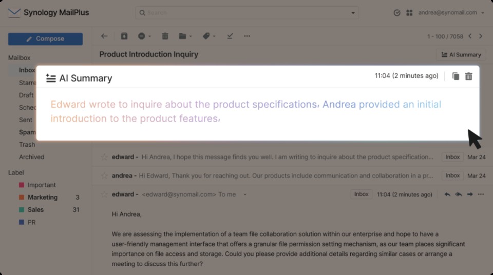 Supercharge email productivity with Synology MailPlus AI