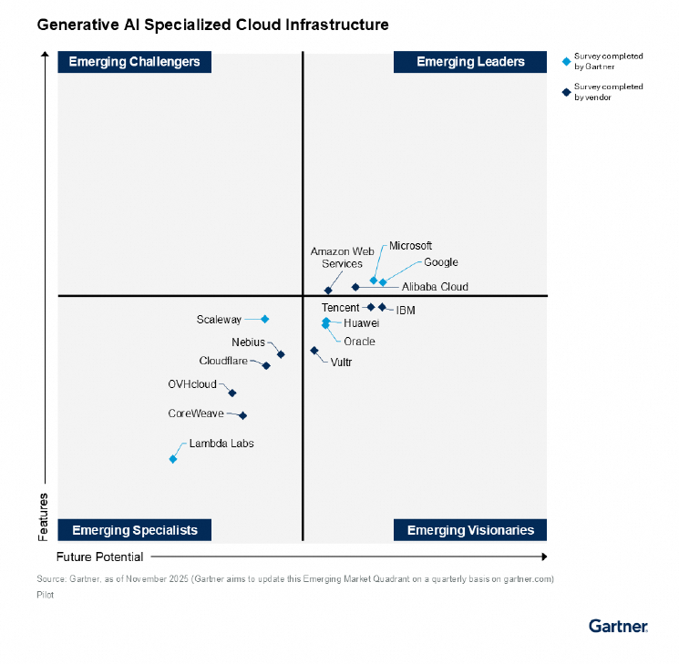 Alibaba Cloud, the digital technology and intelligence backbone of Alibaba Group, today announced it has again been recognized as an Emerging Leader across all four quadrants evaluated in the latest four Gartner® “Innovation Guide for Generative AI” reports, published in November 2025.