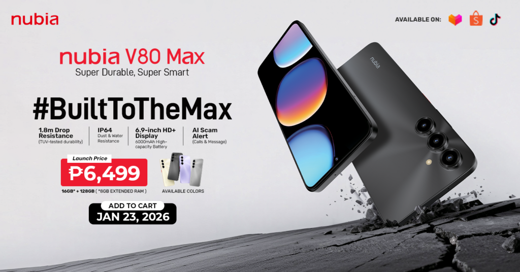 Priced at ₱6,499 (8GB RAM + 128GB storage) exclusively on its launch, the nubia V80 Max delivers exceptional durability, intelligent protection, and smooth performance at an accessible price point. Shoppers can get it on January 23 at nubia Philippines’ official stores on Shopee, Lazada, and TikTok Shop, as well as selected authorized retailers nationwide.