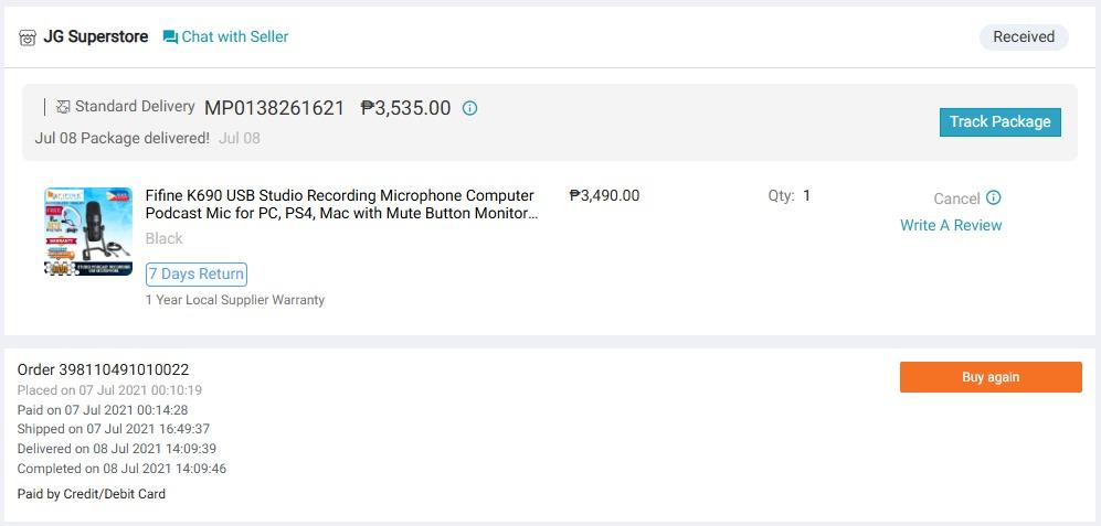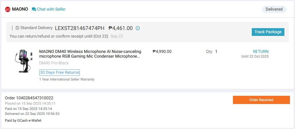 I came across the Maono DM40 on Lazada, and truth be told, I was somewhat hesitant to buy the regular version of the microphone because, at the time, it was at full price. Thankfully, like most online buyers, I just added it to my cart and, lo and behold, it coincided with an online sale, leading me to get the Maono DM40 Pro instead. With just a thousand-peso difference between the two versions, and since I didn’t opt for a boom arm due to space considerations, I bought the microphone and waited for its arrival.