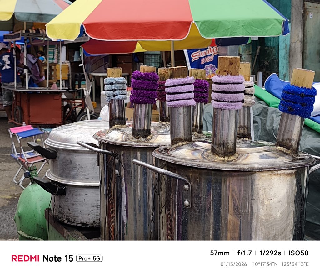 Looking closely at this Sinulog shot, we see the stainless steel pots show visible heat stains and wear without looking overprocessed, while the colorful fabric wraps retain texture and depth.
