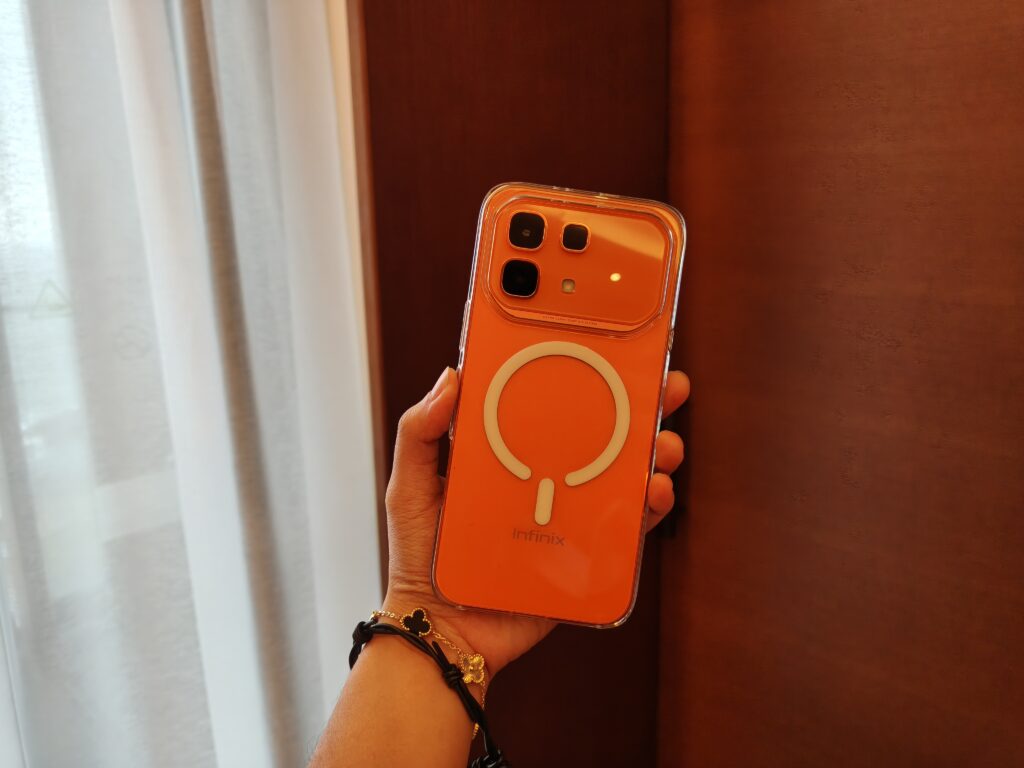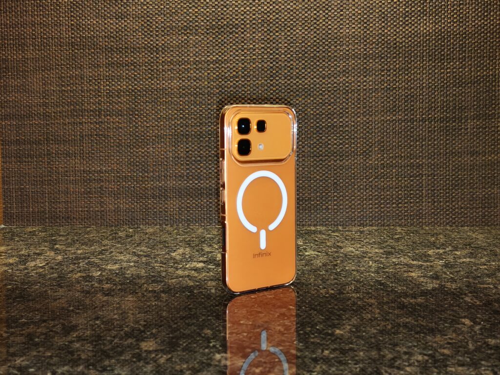 Infinix also adds its own personality through the Active Matrix display, a small LED interface at the back that lights up for notifications, animations, and even mini interactions. It’s quirky, slightly gimmicky, but undeniably fun!